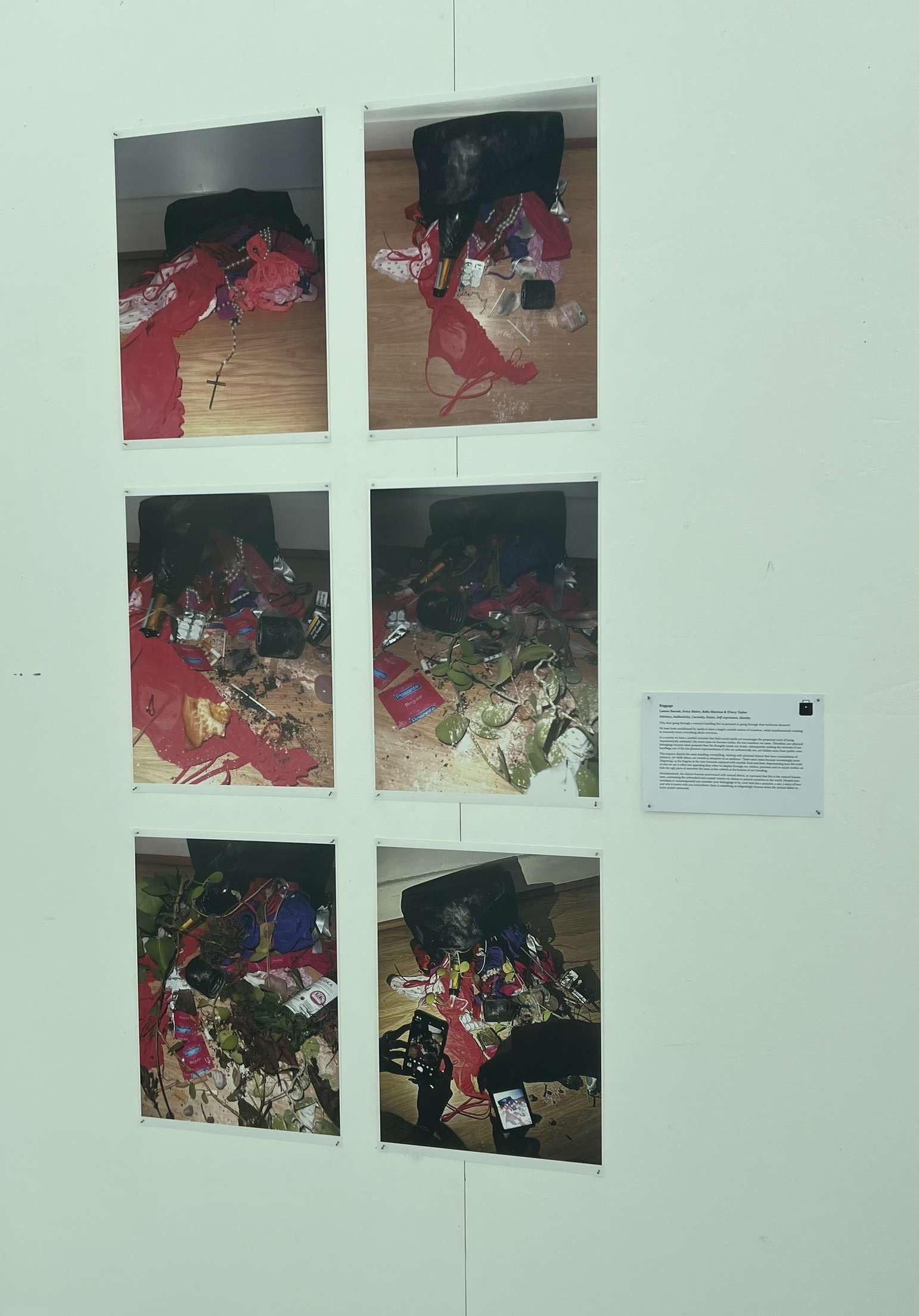 This photo enquiry depicts the same handbag overspilling, starting with personal objects that have connotations of intimacy, yet while taboo, are viewed as attractive to an audience. These same items become increasingly more ‘disgusting’, as the lingerie at the start becomes replaced with mouldy food and litter. Representing how the truth of who we are is often less appealing than what we display through our clothes, personas and on social media; we hide the ugly parts of ourselves the same as the rubbish at the bottom of our handbag.